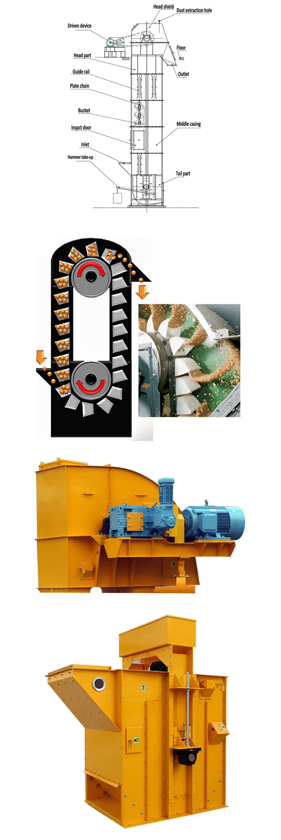 3) Des godets en plastique haute résistance sont utilisés pour cet élévateur, ils ont une longue durée de vie et un grand coefficient de charge complet.